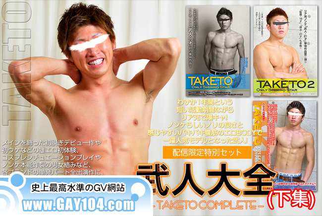 メインを飾った初脱ぎデビュー作や初ウケなどの雄エロ初体験、コスプレシチュエーションプレイやノンケ本能炸裂の男女絡みなど、各ブランドの単発パート全出演作に、単体2作品が連続ヒットした「ONLY SHINING STAR TAKETO 1・2」、武人の全出演作を完全網羅した『武人大全 -TAKETO COMPLETE-』が、1ヶ月間の配信限定作品として遂に発売決定!!